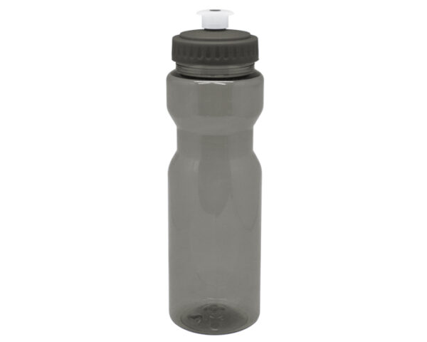 Cilindro de plástico deportivo libre de BPA, con tapa de rosca y válvula hermética; cuerpo y tapa del mismo color. CAP. 850 ml.